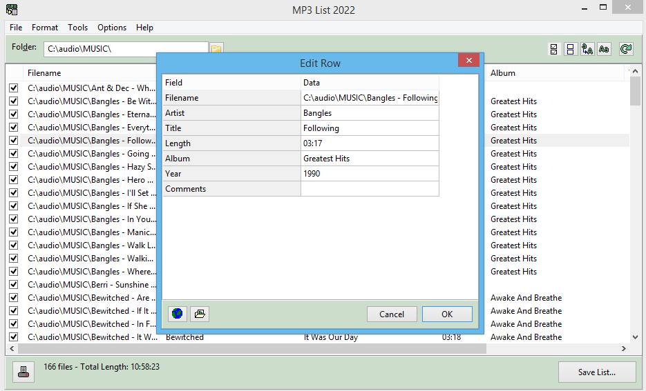 - MP3 List (to help you get a list of audio files on your computer to a text file)