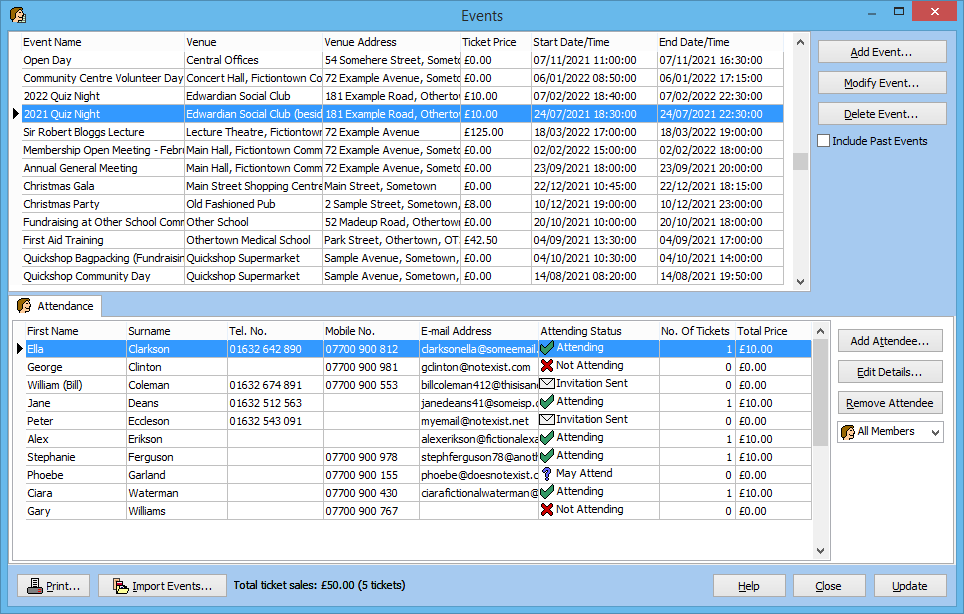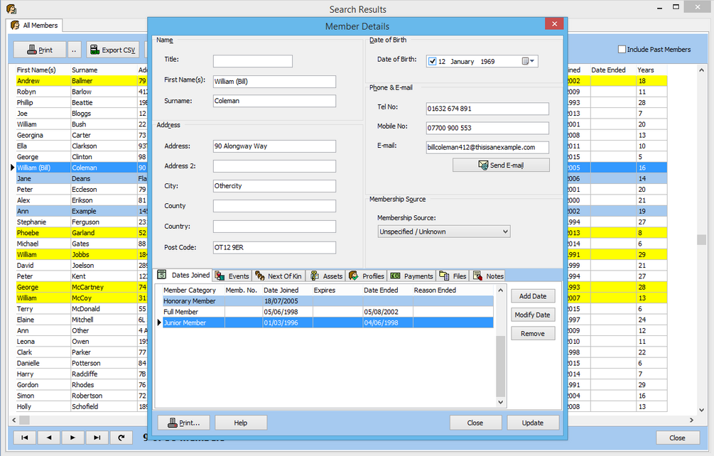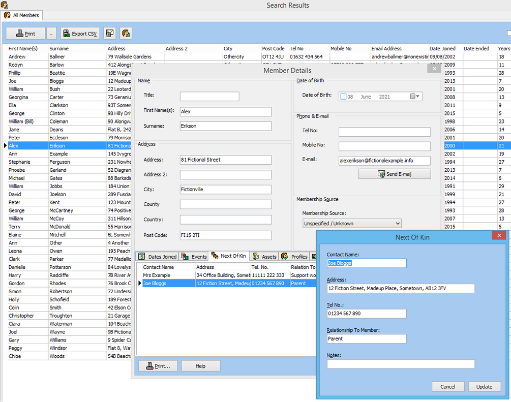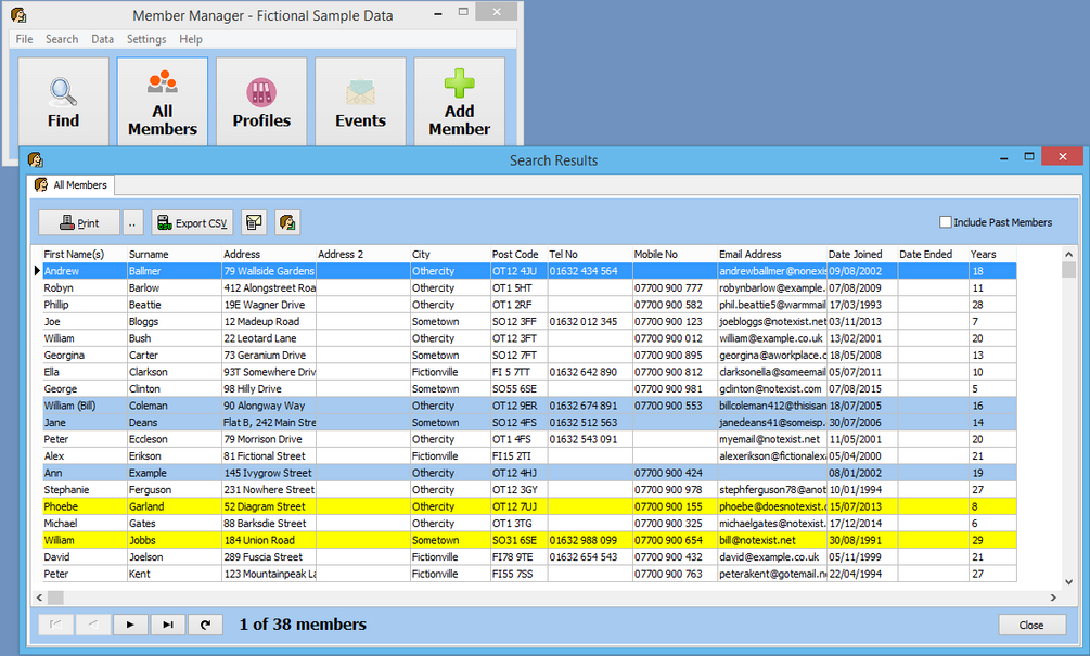 Membership software for Windows PCs or laptops - for clubs and charities to manage their membership info.