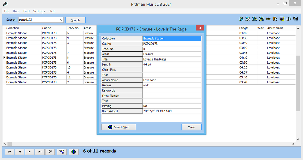 Catalogue all your tracks, and then you can easily find which CD has the track you are looking for! Includes options to search by keyword, and more specific searches.