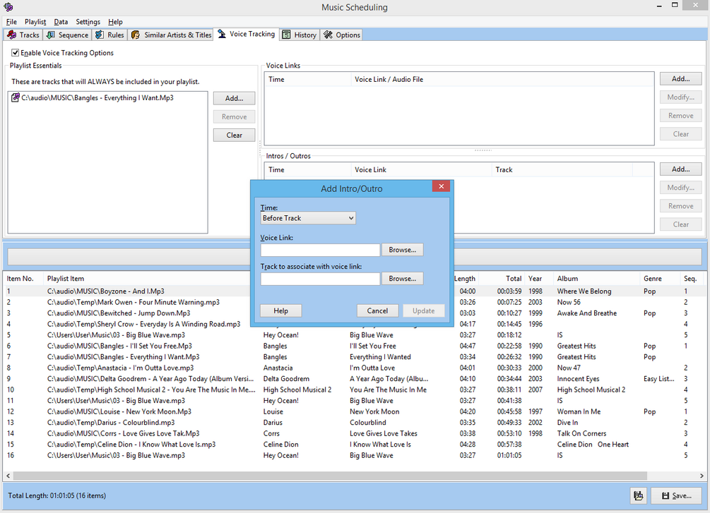 Music Scheduling can create hours of playlists within minutes - which you can then use in your audio player or playout software. Ideal for home studios, community radio, hospital radio and student radio.